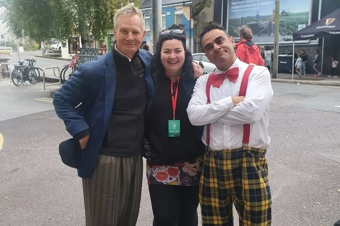 L-R: Bill Irwin, Marketing Meg, Pedro Tochas at Pitch’d Circus and Street Arts Festival 2023